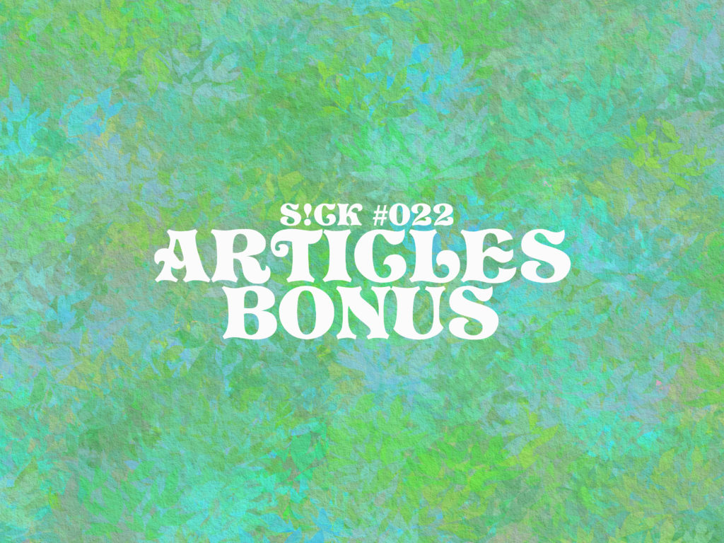 Vous venez d’atterrir sur la page des articles bonus de S!CK #022. En complément de ce numéro, nous vous proposons cette série de sujets alternatifs et exclusifs au web, qui ont pour objectif d’accompagner les 168 pages de notre vingt-deuxième numéro papier.