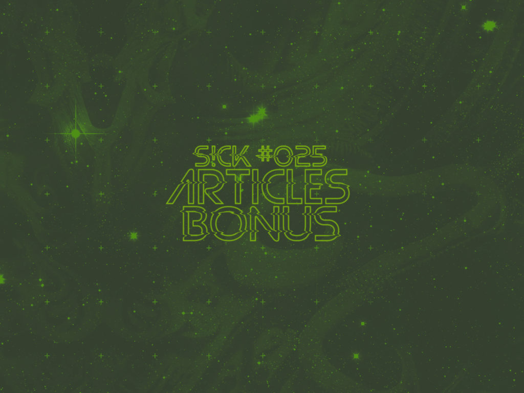 Vous venez d’atterrir sur la page des articles bonus de S!CK #025. En complément de ce numéro, nous vous proposons cette série de sujets alternatifs et exclusifs au web, qui ont pour objectif d’accompagner les 168 pages de notre vingt-cinquième numéro papier.