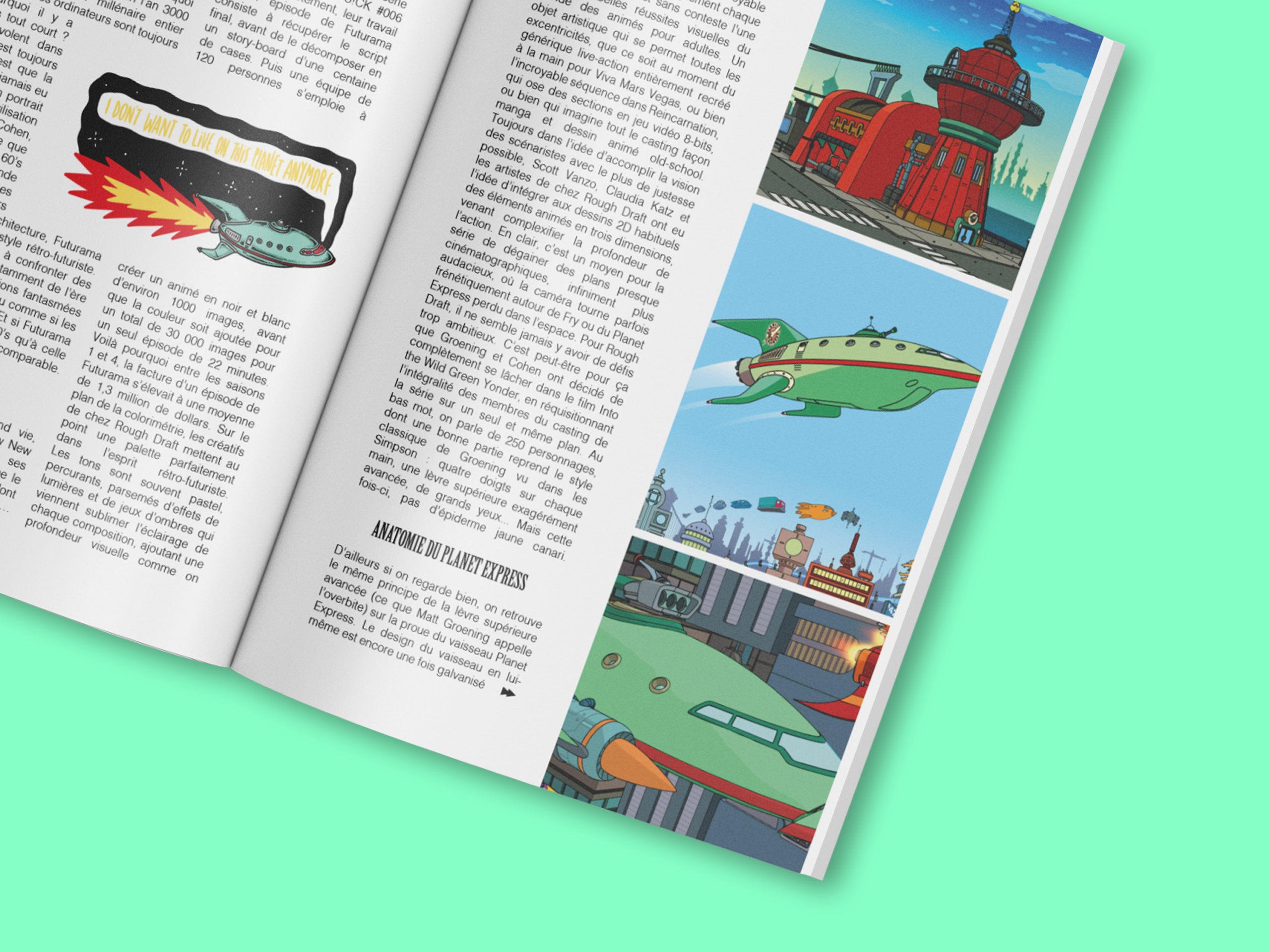 De son lien avec l’art rétro-futuriste en passant l’influence omniprésente de la télévision, sans oublier la satire vitriolée de notre société contemporaine, notre grand dossier de couverture plonge dans une série d’animation perchée quelque-part entre l’anticipation et la dystopie. L’occasion d’aborder la conception de son générique emblématique, l’architecture de New New York, en passant par la conception même du vaisseau Planet Express, tout en gardant un oeil sur son propre rapport à l’image — les shows fictifs, fausses publicité, et mise en abîme de la télévision qui traverse les épisodes de la série. Le tout est signé d’une couverture recto/verso de l’artiste Albert Montoya. Au sommaire de ce numéro, on revient aussi sur la conquête de l’Est dans Red Dead Redemption, le purgatoire du gore de Brain Dead ou The Revenant.